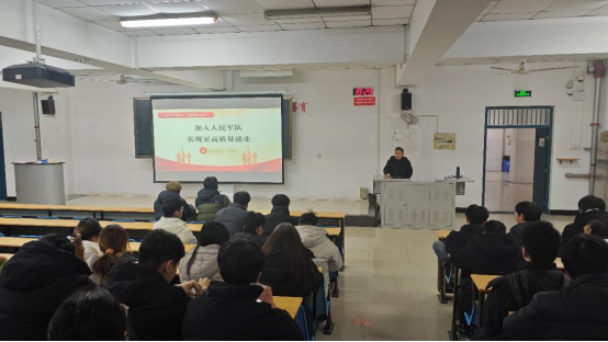 宣讲过程中,万林宾老师紧扣新时代国防建设需求,从大学生入伍可参与的各类专项计划切入,系统讲解毕业生入伍核心政策。随后围绕服役发展前景、优待保障举措、报名基本条件、选拔考核标准等关键内容细致解读,着重强调,大学生入伍既是依法履行国防义务的责任担当,更是锤炼品格意志、拓宽人生发展路径的宝贵契机。