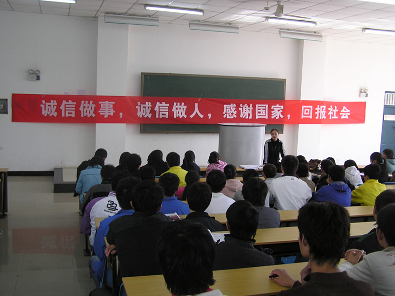 2010年10月26日,在公教楼C108举办了计科系、软件学院“诚信做事、诚信做人”签名活动。参加签名活动的主要包括2011年申请国家助学贷款的同学、获得励志奖学金的同学及各班班委同学。辅导员老师均到场参加。辅导员针对国家的助学贷款政策及国家和学校的资助政策做了介绍,并号召同学们树立诚信意识,珍惜自己的信用记录,做到诚信贷款、诚信还款。并用“诚信做事、诚信做人”的标准严格要求自己,做一个诚实守信的人。随后学生代表做了诚信倡议。通过此次活动,使贷款和获得国家资助的同学全面了解国家的助学贷款政策和资助政策,了解办理贷款和还款的程序,使他们了解违约对自己的影响和危害,使他们树立感谢国家、感谢社会、感谢学校的感恩心态,并使他们树立“诚信做事、诚信做人”的意识,并能将来能回报社会。