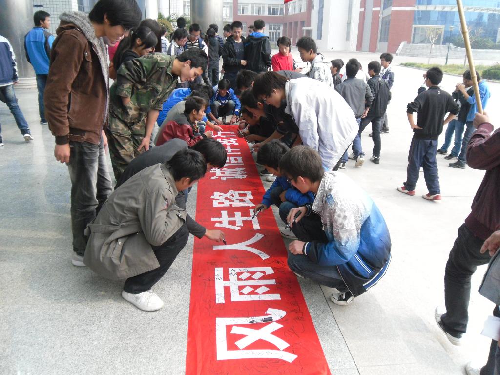最后同学们在“风雨人生路,诚信伴我行”的条幅上写下自己的承诺