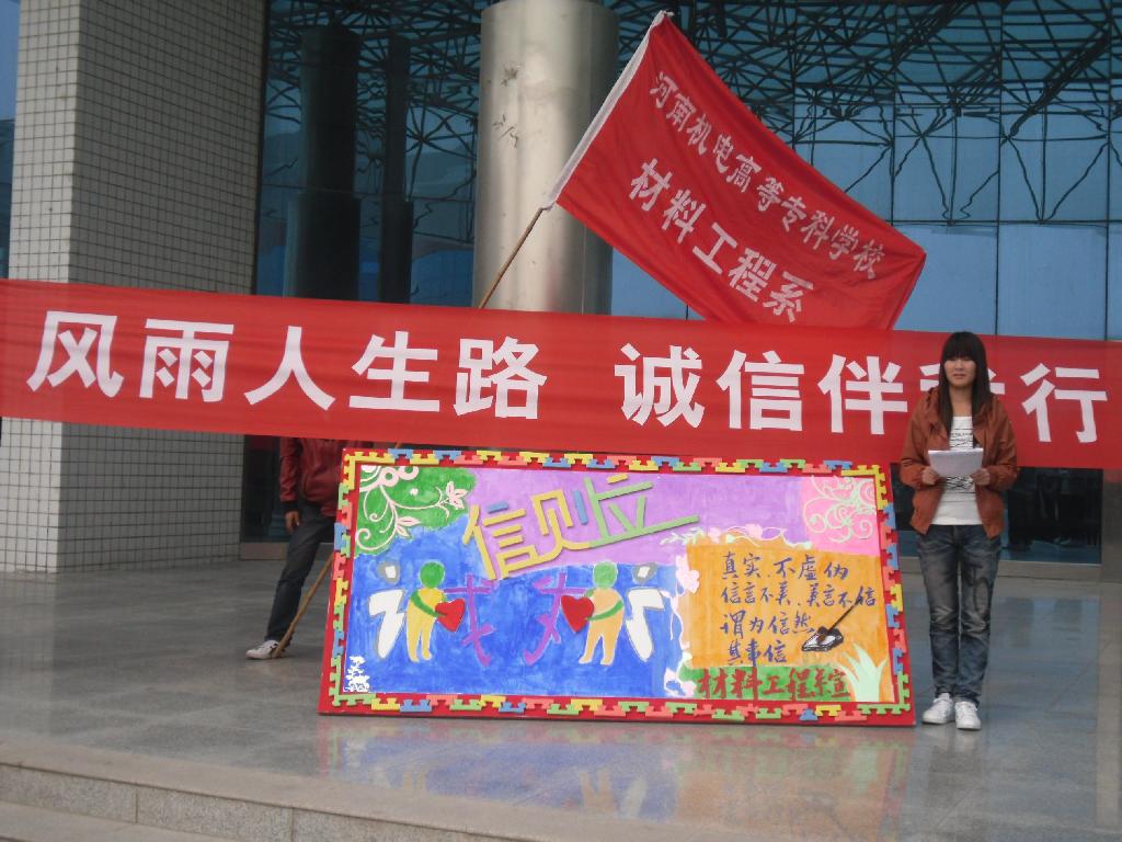 以“呼唤诚信,共筑诚信”为主题的材料工程系诚信教育活动于2011年10月28日在公教楼大厅前举行,此次活动分四个环节,具体如下:
