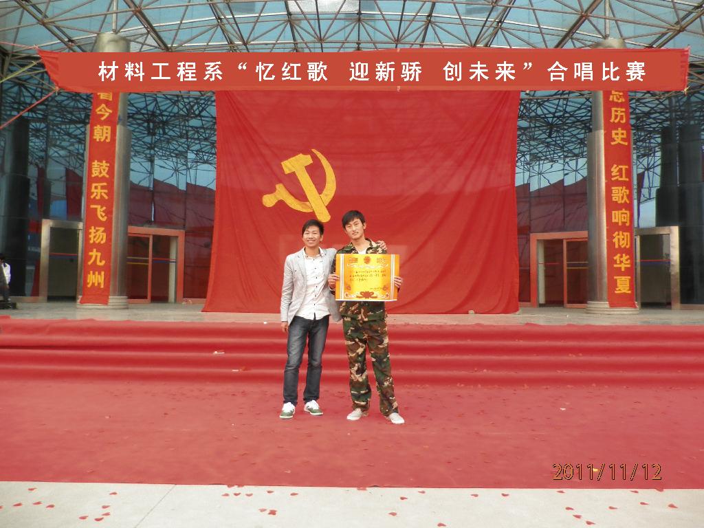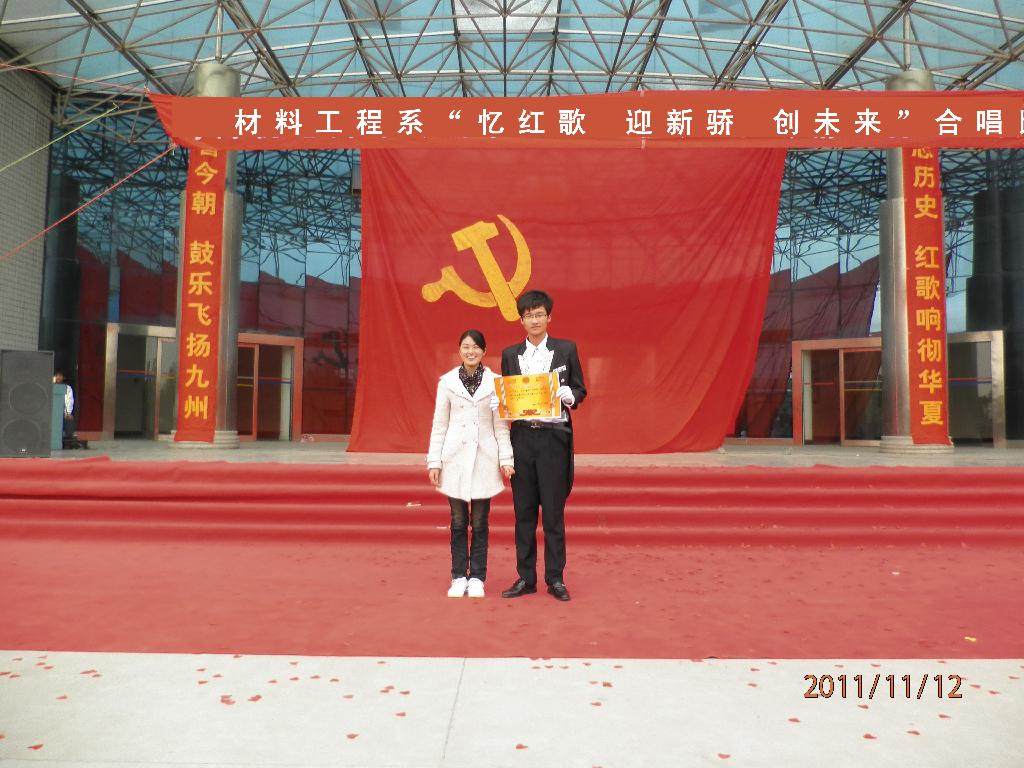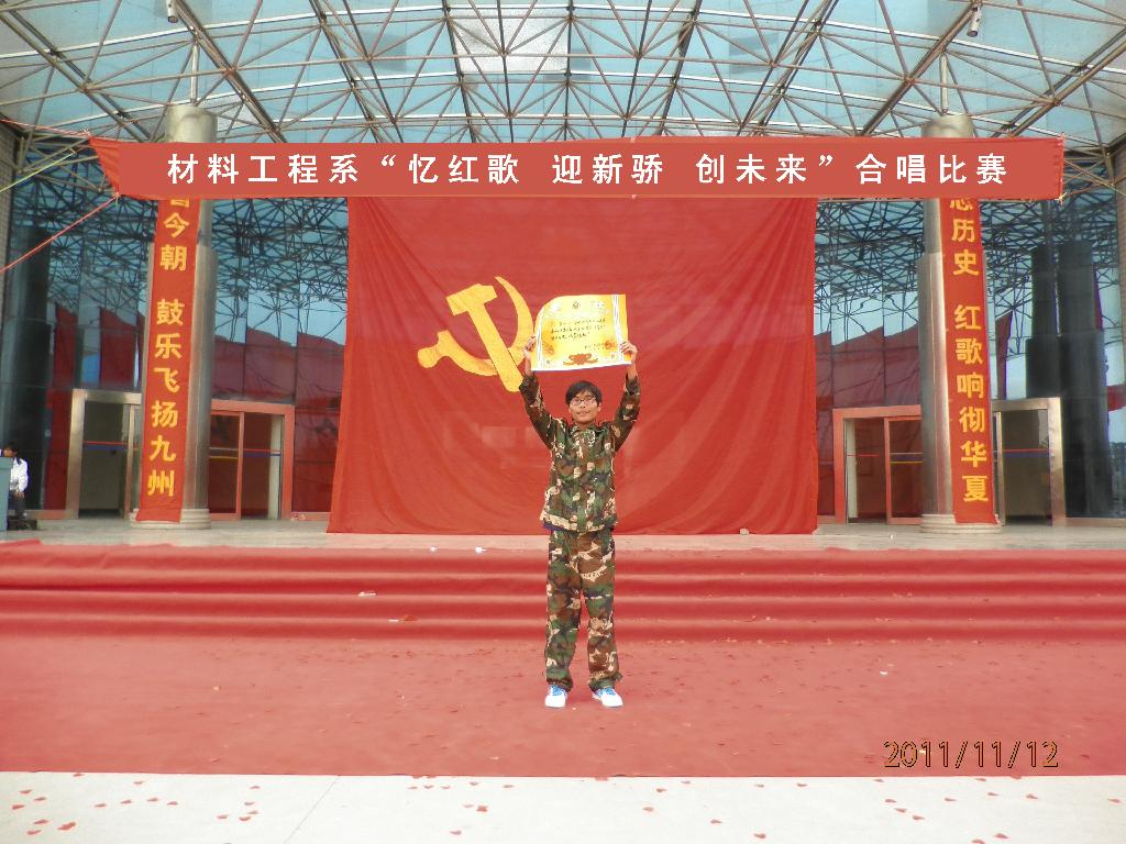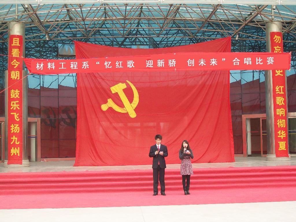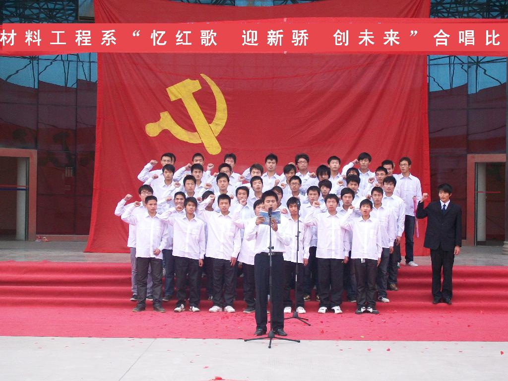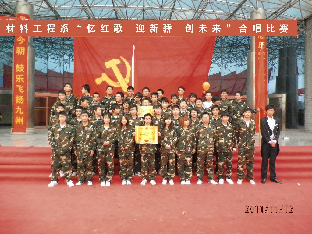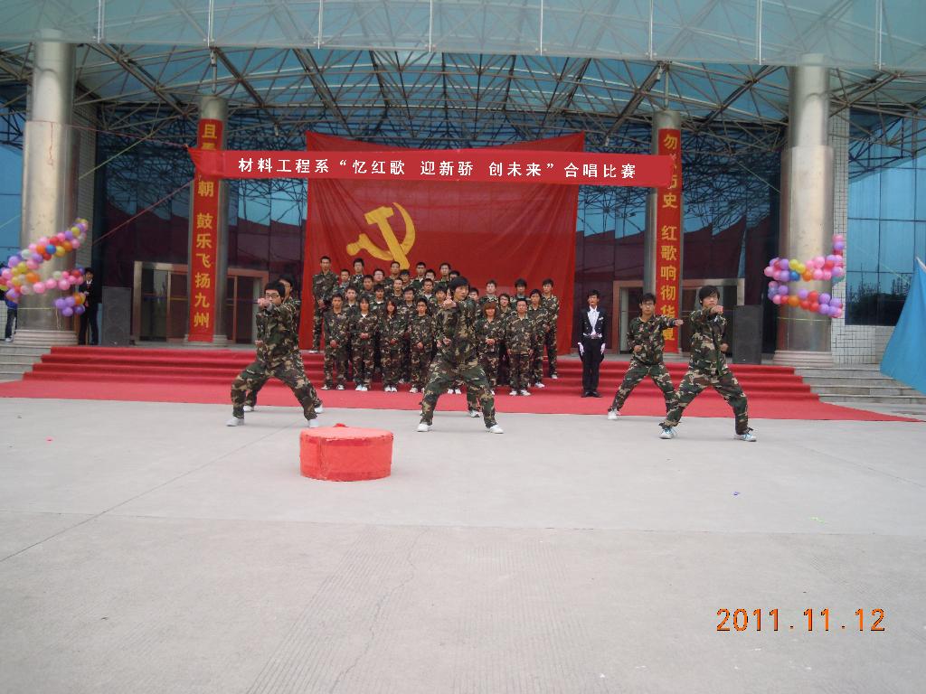 2011年11月12日上午,由我系文艺部主办的“忆红歌 迎新骄 创未来”合唱比赛在公教楼大厅拉开帷幕。各学生会主席及评委应邀出席大赛。本赛分校歌和红歌两部分,校歌唱出了同学们的机缘之情,红歌则唱出了对祖国的热爱。此次比赛旨在增强各班的凝聚力,同时告诉同学们不忘历史。最后大赛取得了圆满成功。