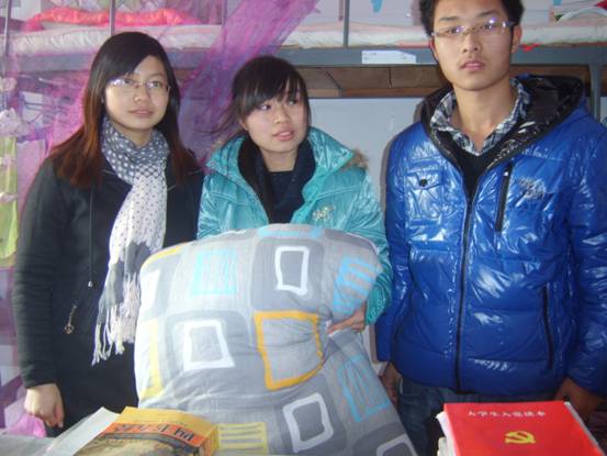 团总支副书记杨喜丹为管理系大一学生送上“爱心”棉被