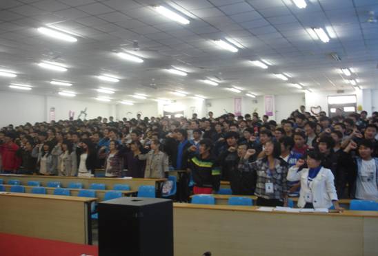 激情仍在回味依然转眼之间我们进入了本次活动的最后环节宣誓环节,全体师生起立共同为本次活动做最后宣誓,主持人带着大家一句句的宣誓,誓词一声声回荡在耳边,所有的人都被感染着,激励着。本次活动也在这激情而严肃的气氛中宣布结束。