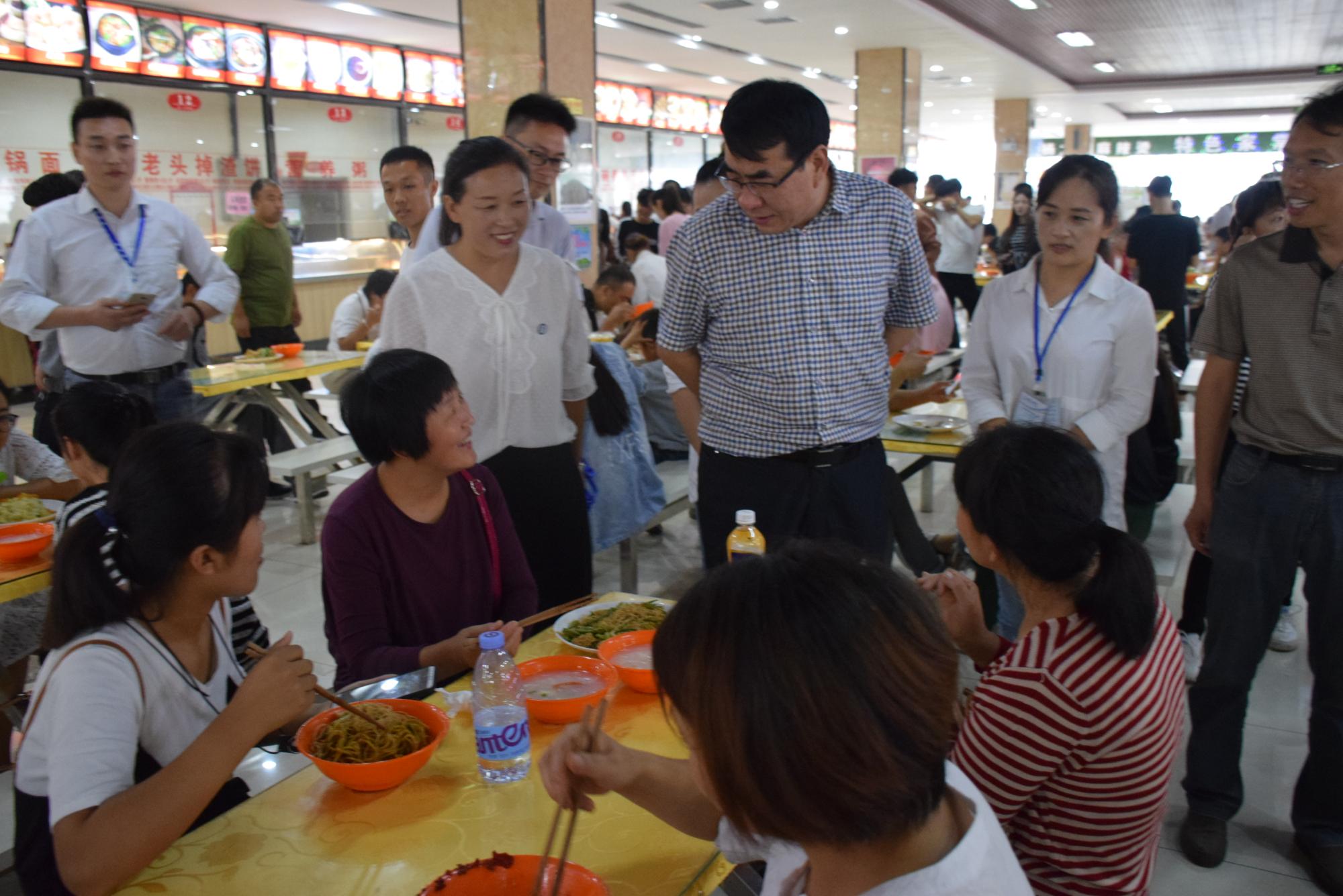 校领导到餐厅与新生交谈