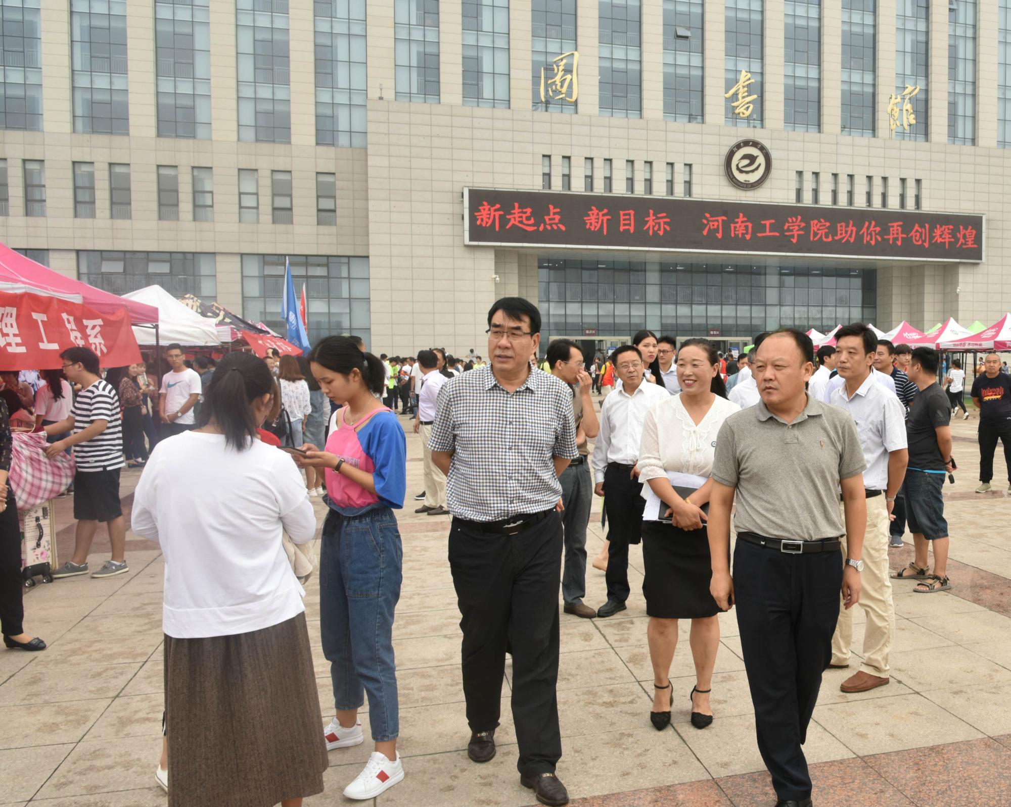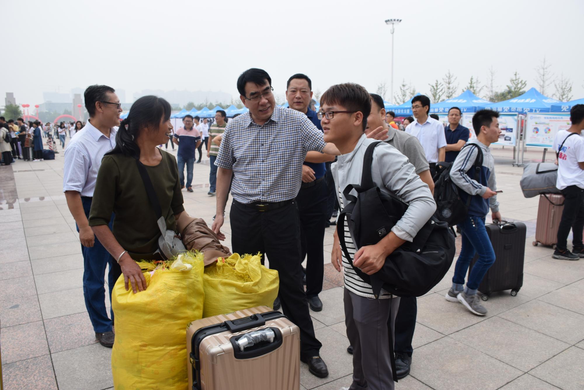 学校高度重视迎新工作,院党委书记赵学通、院党委副书记李贵敏、副院长戚新波、张国臣在相关部门负责人的陪同下深入迎新现场,详细了解各系新生报到情况,慰问现场迎新工作人员。在报到处、学生宿舍、家长休息处、学校餐厅,赵学通一行与新生及家长亲切交流,了解询问他们的家乡、专业和报到情况,感谢家长放心将孩子送到学校,并表示学校以生为本,注重人才培养质量,希望孩子们早日融入河南工学院大家庭,吸取大学文化精华,成长成才,成为新时代有为青年。