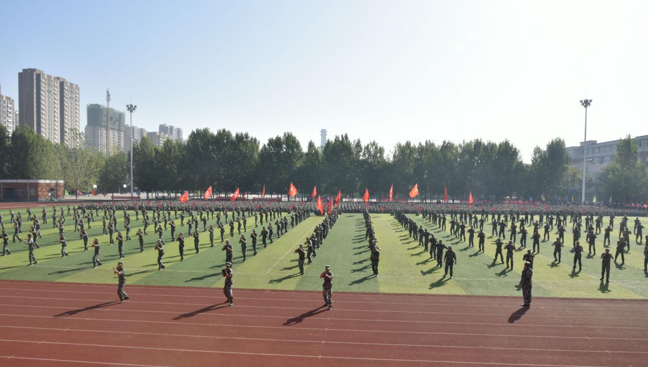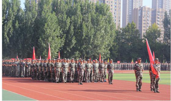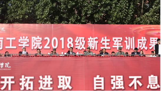 2018年9月29日上午,我校2018级新生军训成果汇报表演在田径场隆重举行。32145部队副政委王斌,红旗区人武部政委王建军、32145部队部管科科长张川,校领导、相关职能部门负责同志,各系部党总支书记出席大会,2018级全体新生与部分教师、辅导员代表观看了表演,大会由学生处、武装部负责人朱松梅主持。