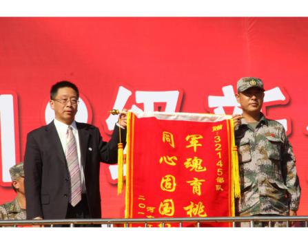 汇报表演后,校领导张国臣向承训部队赠送锦旗,向全体教官在军训中的辛苦付出表示了由衷的感谢。