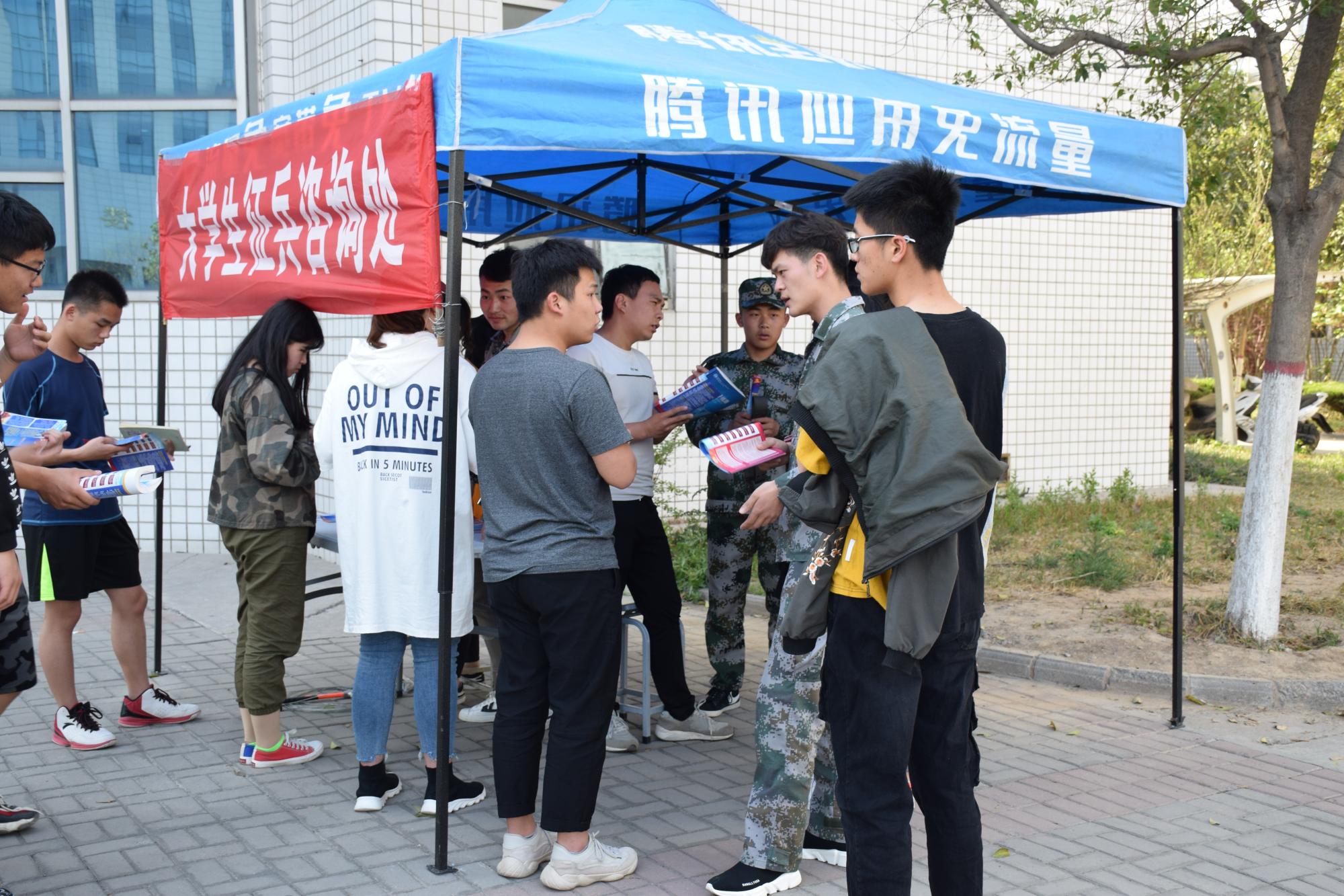 仪式结束后,广大报名学生参加了征兵宣传签名活动。武装部在会场设立了咨询处,现场为广大学生政策解读、解疑答惑,并发放《征兵宣传手册》。