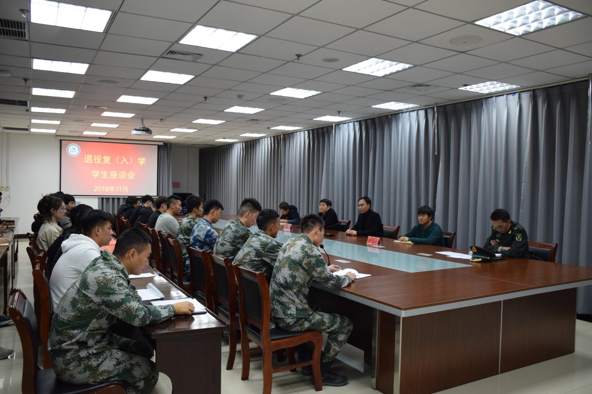 为了深入了解退役复(入)学学生在校学习、生活情况,加强教育管理,更好地服务学生成长成才,11月14日,校党委武装部组织召开了退役复(入)学学生工作座谈会。校团委、学生处、财务处和各学院辅导员代表及全体退役大学生参加了会议。会议由武装部国防教育科长杨来宾主持。