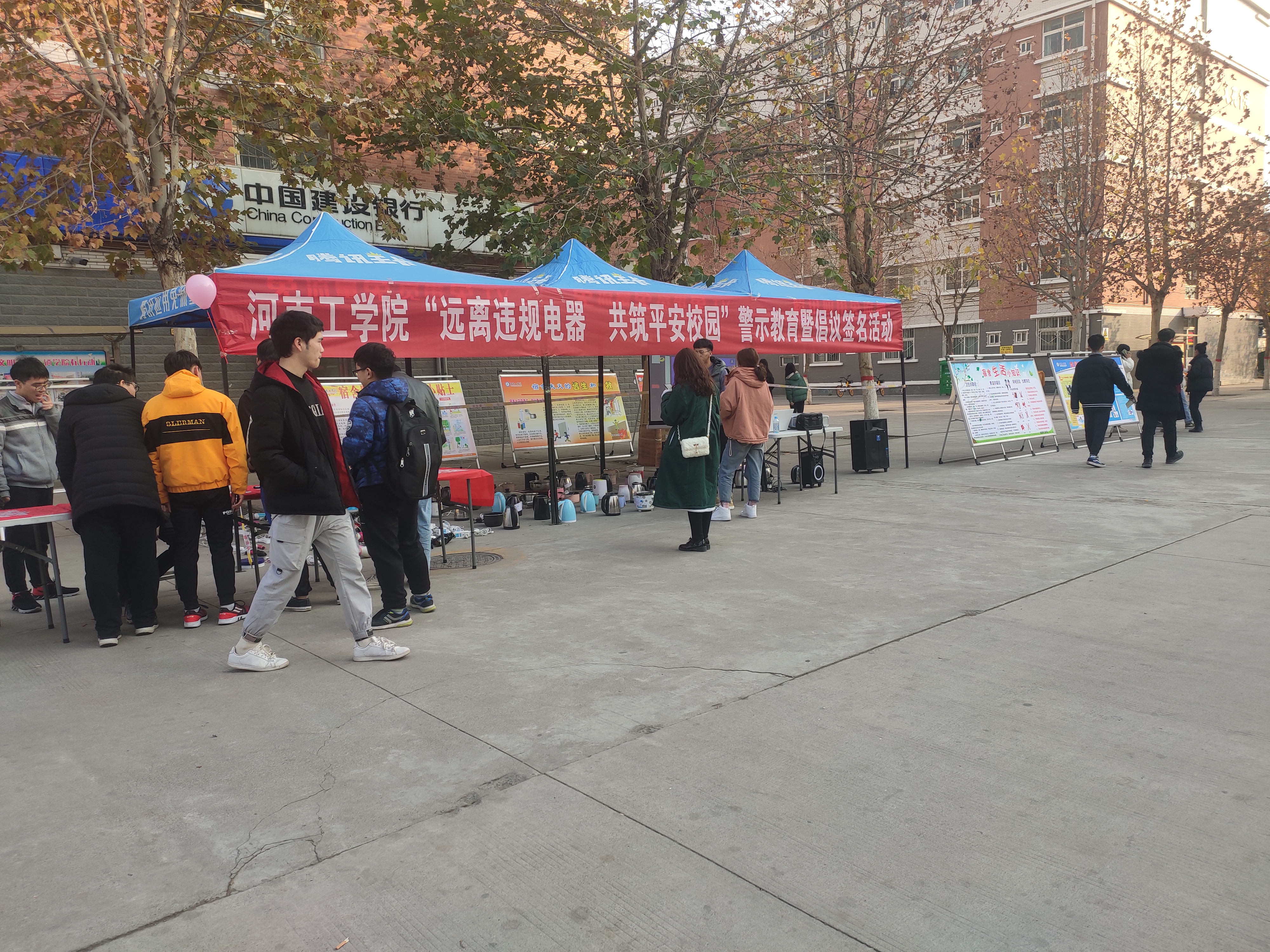 为提高广大师生消防安全意识,切实增强消防安全主体责任,消除影响学生宿舍安全隐患,筑牢平安校园防线。2019年12月19日下午党委学生工作部在文苑生活区组织开展“远离违规电器 共筑平安校园”警示教育暨倡议签名活动。