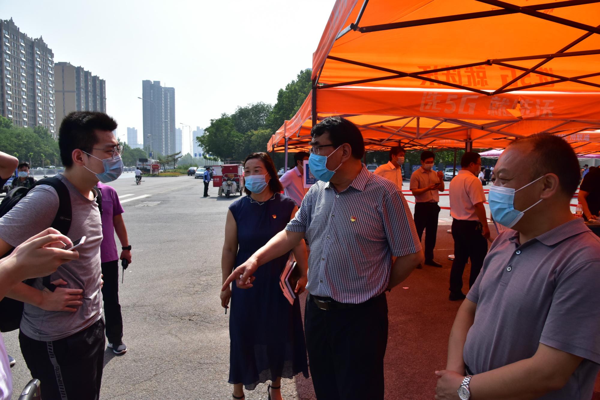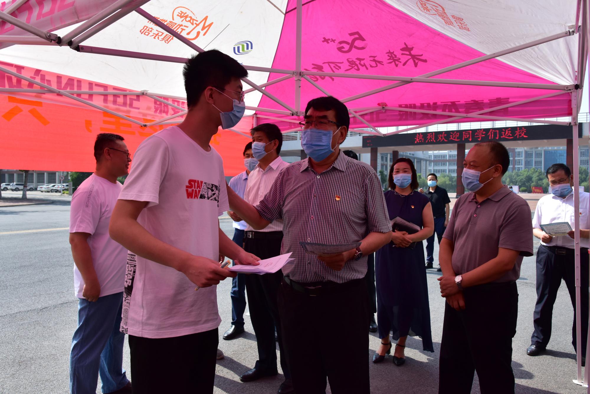 校党委书记赵学通、校长陈丙义等校领导及相关职能部门负责人慰问现场工作人员,要求各单位务必落实落细疫情防控各项工作举措,并在南北门返校报到点、宿舍、餐厅与返校学生进行亲切交流,仔细询问学生返校过程、求职就业等情况,叮嘱同学们严格遵守校园防控秩序,科学做好个人健康防护。