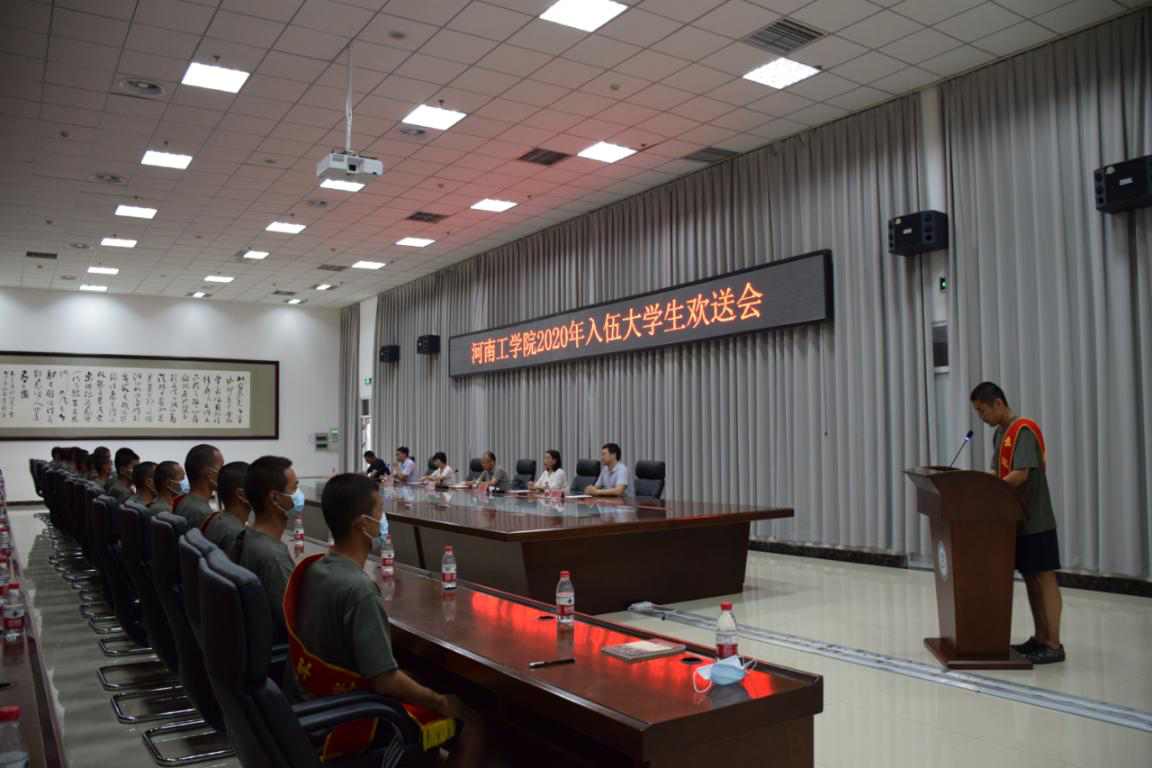 9月5日上午,我校隆重举行2020年入伍大学生欢送会。党委委员、副校长戚新波出席欢送会并与入伍学生座谈。宣传部、学工部(武装部)、教务处负责人、各学院代表及全体入伍大学生参加了欢送会。欢送会由学工部副部长于善思主持。