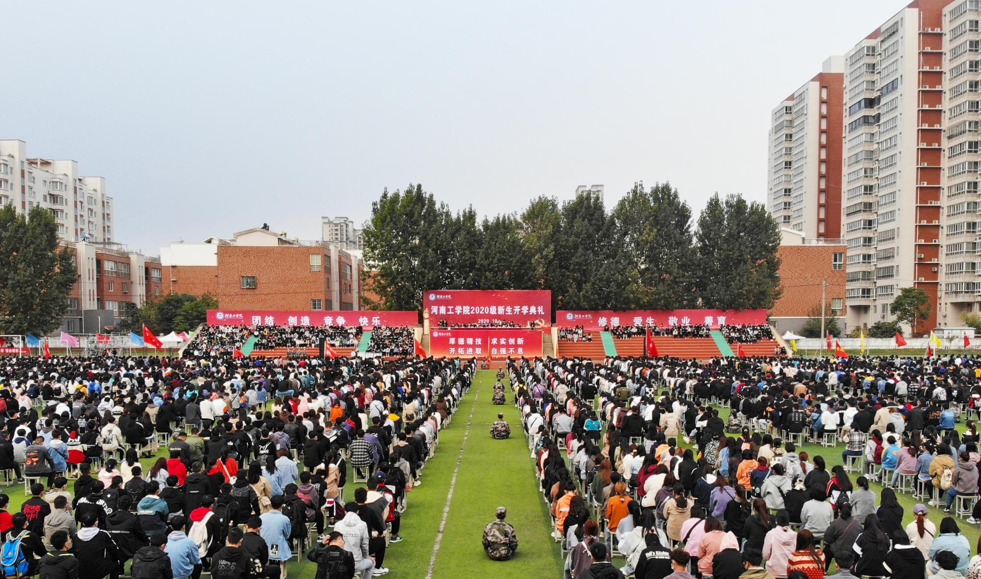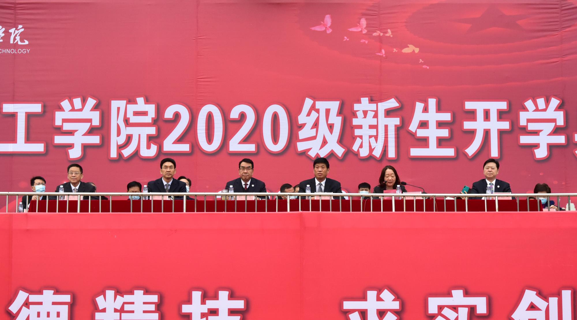 10月12日上午,我校在田径场举行2020级新生开学典礼。校领导赵学通、陈丙义、李贵敏、刘莉莉、张国臣、樊羁光出席典礼。学校相关职能部门负责人,各学院院长、新生辅导员和2020级全体新生参加典礼。典礼由校党委委员、副校长刘莉莉主持。