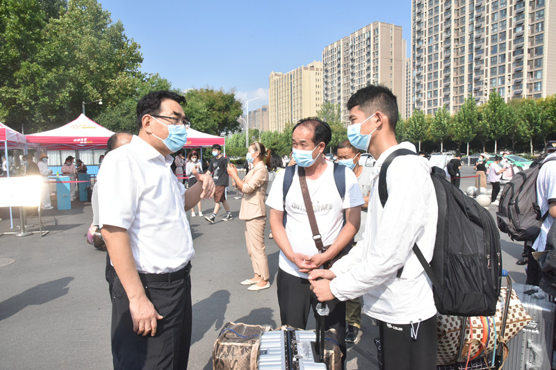今年迎新工作采取新生独立报到,家长不能陪同入校办理手续的校园封闭管理措施。校领导到校门口亲切慰问了新生家长,对家长们理解支持配合学校的疫情防控举措表示衷心的感谢,并表示学校一定会为学生创造一个安全、满意的校园环境,请家长们放心。在与新同学们的亲切交谈中,校领导仔细询问了新生如何来校、有无困难、学习打算等情况,勉励广大学子以良好的精神状态快速融入校园生活、适应大学节奏,在新征程上刻苦学习、奋发图强,不断提高内在素质,锤炼过硬本领,树立正确的人生目标,努力成长为堪当民族复兴大任的时代新人。