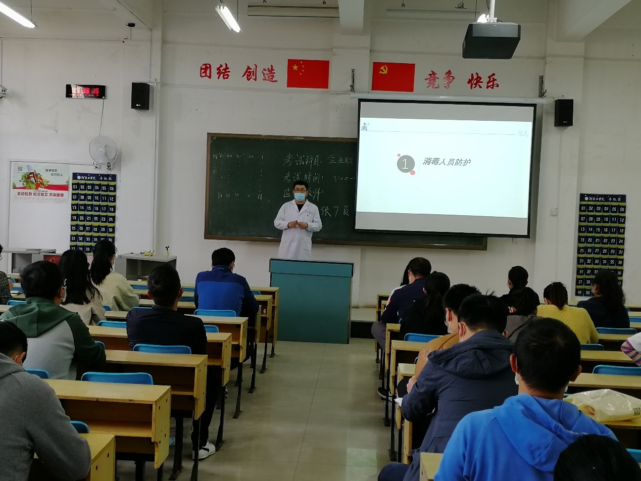 为进一步做好我校新冠肺炎疫情防控工作,切实加强疫情防控相关知识和技能培训,以更积极的态度与新冠肺炎决战到底。4月23日下午3点,在公教楼B106,学工部邀请校医院许梦轩为全体学工人员进行疫情防控专题培训。