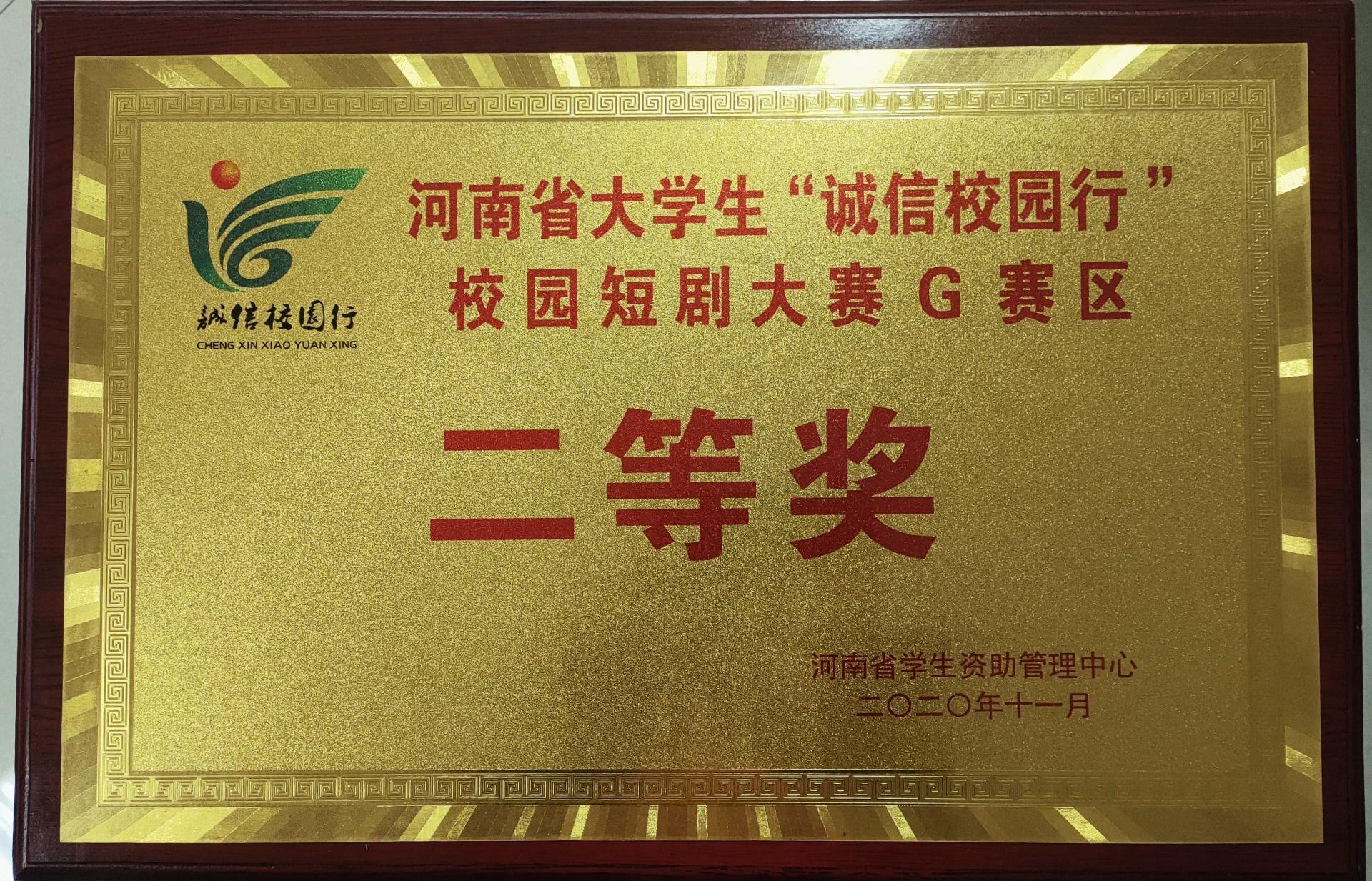 由河南省教育厅、中国人民银行郑州中心支行、中国银行保险监督管理委员会河南监管局、国家开发银行河南省分行联合决定举办2019-2020学年河南省大学生“诚信校园行”校园短剧大赛G赛区的赛事在焦作师范高等专科学校展开。我校代表队与来自省内包括郑州师范学院、河南师范大学、河南牧业经济学院在内的20支队伍,经过激烈的角逐,最终荣获区赛二等奖的成绩。