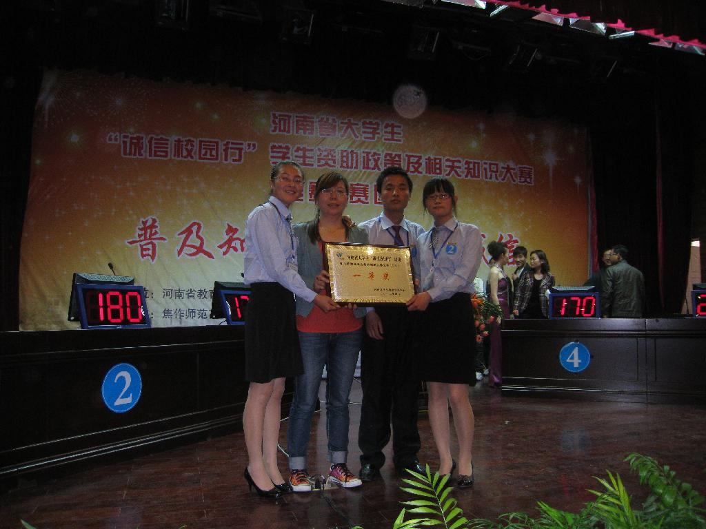 4月13日上午,河南省大学生“诚信校园行”学生资助政策及相关知识大赛F赛区比赛在焦作师范高等专科学校落下帷幕,我校代表队荣获一等奖,晋级河南省总决赛。