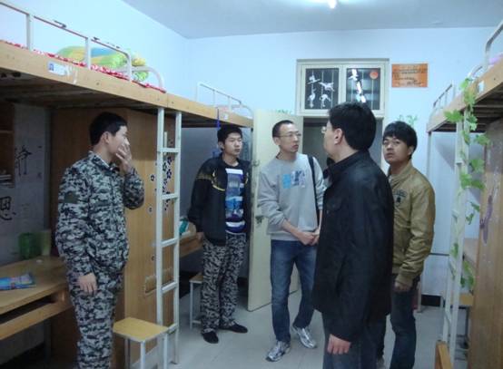 4月18日下午16:30分,机电工程系党总支副书记刘鹏老师在2011、2012级辅导员的陪同下,走访了学生宿舍,并代表机电系给同学们带去了诚挚的问候和关心。