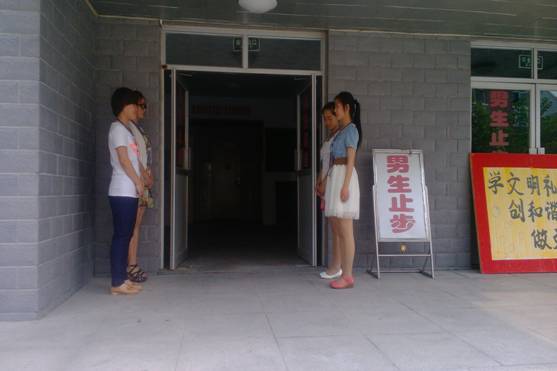 “这位同学,请你把拖鞋换一下吧”、“同学,请把你的衣服换一下吧”、“同学,请不要把饭带入宿舍楼”。