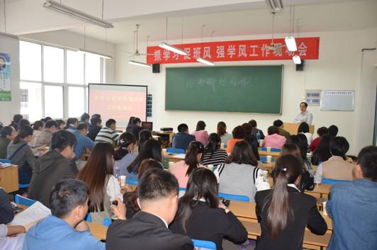 4月19日下午三点,我校学风建设教育系列之“抓学习 促班风 强学风”工作现场会在实字1号楼电子通信工程系311考研教室隆重召开。校党委副书记刘云兵,学生处全体人员,各系(部)副书记和全体辅导员参加了此次会议。会议由学生处处长朱松梅主持。