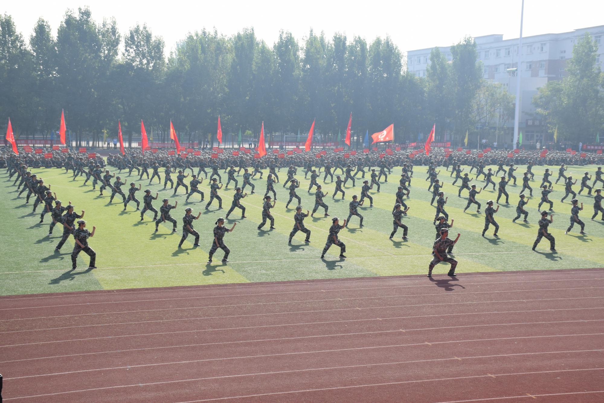 大会在庄严的国歌声中拉开帷幕,校党委书记赵学通教授宣布军训汇报表演正式开始。在激昂的检阅进行曲中,各方队开始分列式表演,130个军训方队依次正步通过主席台,同学们个个精神饱满、步伐整齐、口号嘹亮,接受检阅。随后,进行了男子军体拳、女子军体拳、男子擒敌拳、旗语表演和拉歌比赛,整齐的方队、饱满的精神、干练的动作、嘹亮的声音、精彩的演出搏得了在场师生的阵阵掌声。军训是新生迈入大学的第一课,对增强大学生的国防观念和国防意识,培养大学生的爱党爱国情怀和遵纪守法、令行禁止、团结一致的组织纪律观念,具有十分重要的意义,通过军训,同学们的意志品质和纪律观念得到了锤炼和提高。