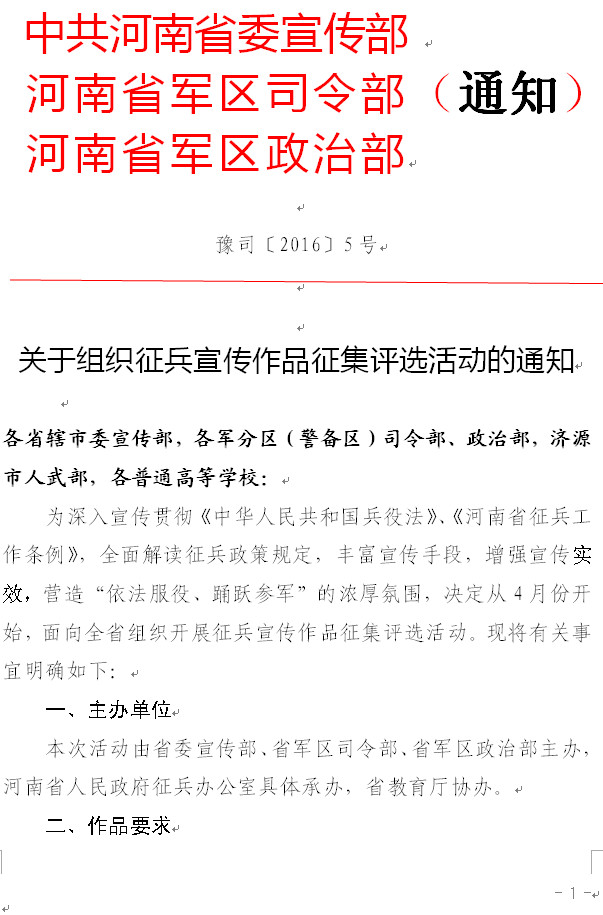 关于组织征兵宣传作品征集评选活动的通知