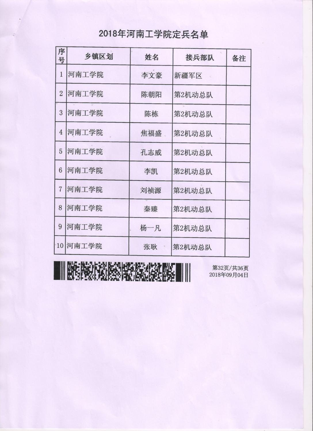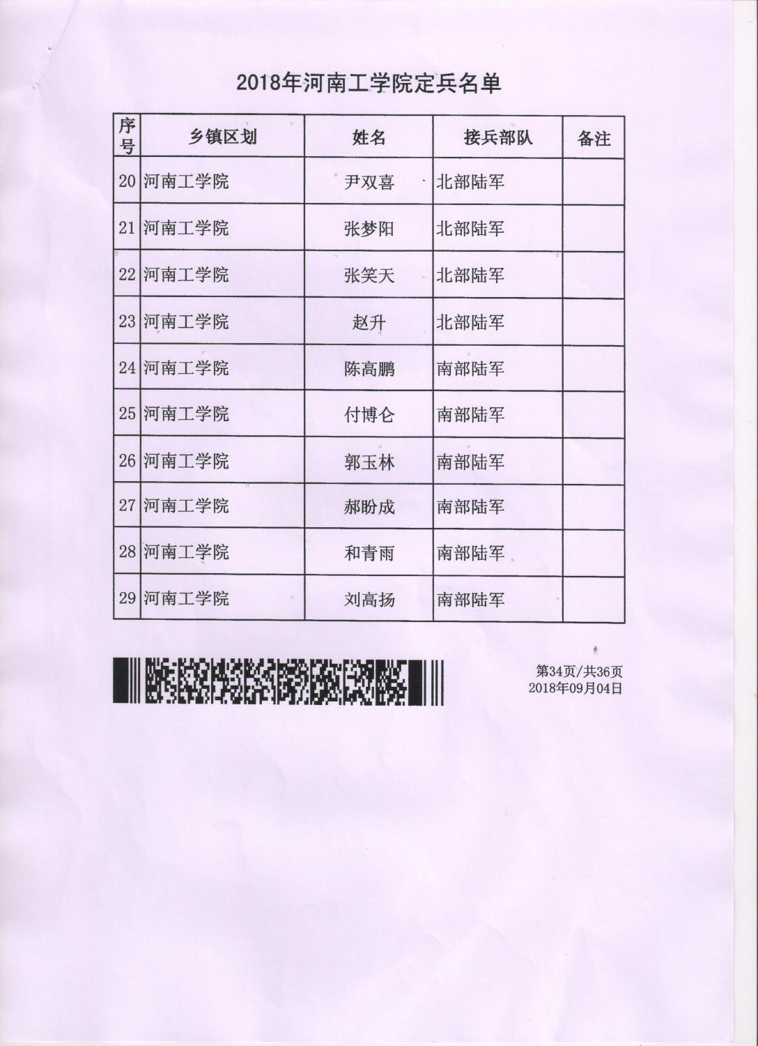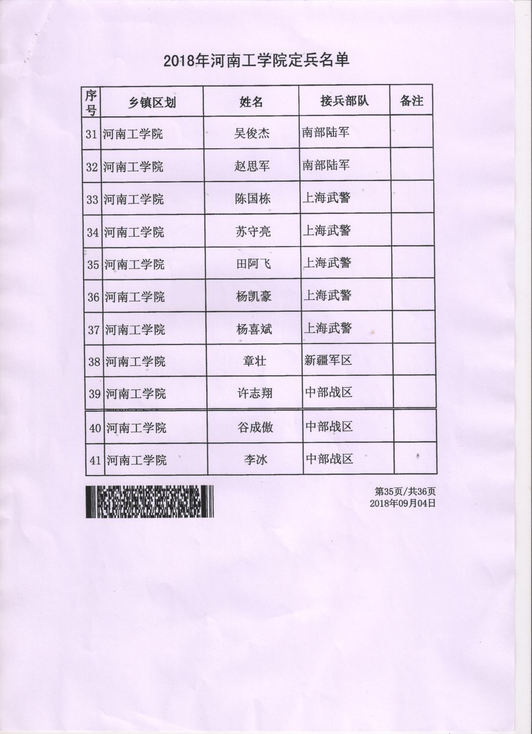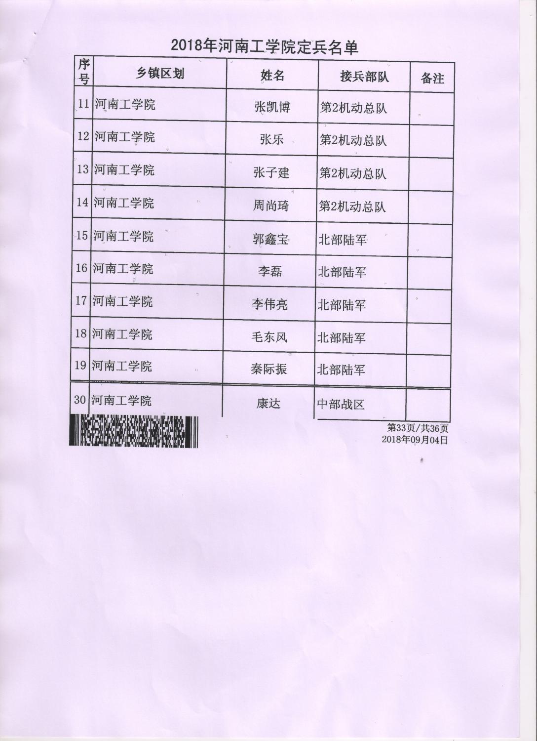 河南工学院2018年度定兵公示
